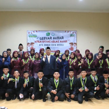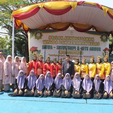 Kegiatan Tour Perpisahan dan Akhirussanah Kelas IX MTs Annur Tahun 2025 MTs Annur menyelenggarakan rangkaian kegiatan perpisahan bagi siswa kelas IX sebagai penutup tahun ajaran 2024/2025. Kegiatan ini meliputi tour perpisahan ke Yogyakarta (Jogja) yang dilaksanakan pada bulan Mei 2025 serta acara Akhirussanah (perpisahan resmi) yang dilaksanakan pada bulan Juni 2025 di lingkungan MTs Annur. Kegiatan tour perpisahan ke Yogyakarta berlangsung dengan penuh antusias dan kebersamaan. Selama perjalanan, para siswa mengunjungi beberapa destinasi wisata dan edukatif yang ada di Yogyakarta. Kegiatan ini bertujuan untuk menambah wawasan, mempererat kebersamaan antar siswa, serta memberikan pengalaman berharga sebelum melanjutkan pendidikan ke jenjang berikutnya. Tour ini juga menjadi momen kebersamaan antara siswa, wali kelas, dan guru pendamping. Selanjutnya, acara Akhirussanah kelas IX MTs Annur yang dilaksanakan pada bulan Juni 2025 berlangsung dengan khidmat dan penuh haru. Acara ini diisi dengan sambutan kepala madrasah, pesan dan kesan dari perwakilan siswa, penampilan seni, serta doa bersama. Akhirussanah menjadi momen penting sebagai tanda berakhirnya masa belajar siswa kelas IX di MTs Annur. Melalui rangkaian kegiatan tersebut, diharapkan para siswa kelas IX MTs Annur dapat membawa kenangan indah, nilai kebersamaan, serta semangat baru sebagai bekal untuk melanjutkan pendidikan ke jenjang berikutnya. Pihak madrasah berharap kegiatan ini dapat memberikan kesan positif dan mempererat hubungan kekeluargaan di lingkungan sekolah.